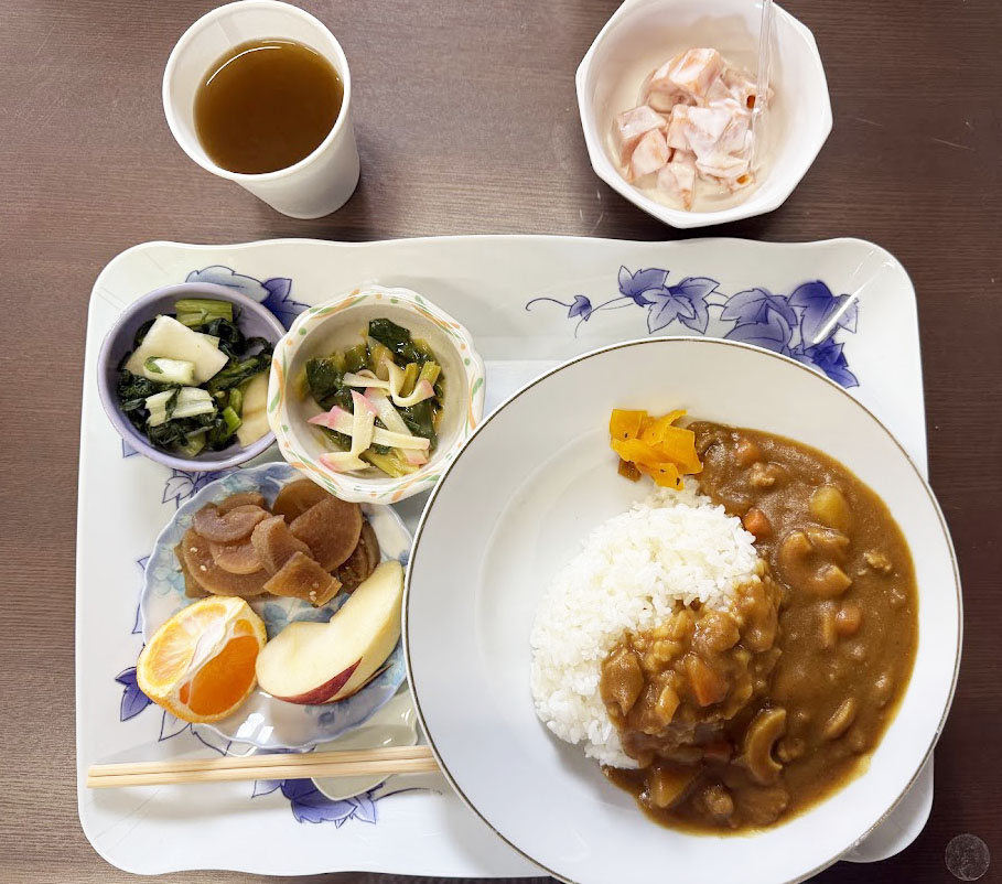 カレーライスと小鉢4品。